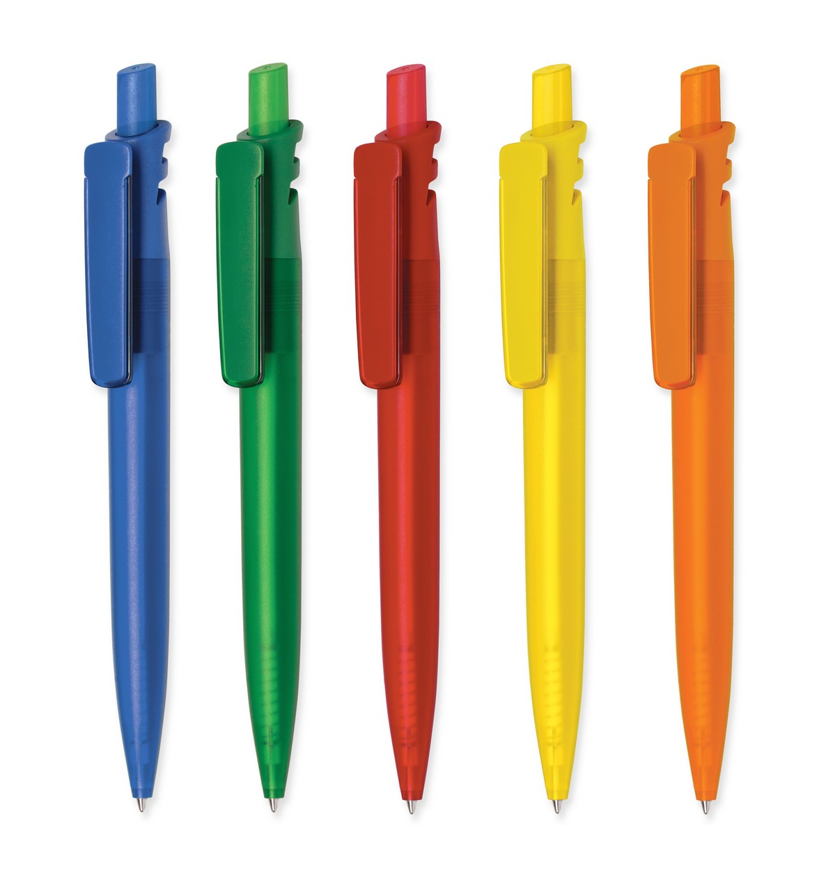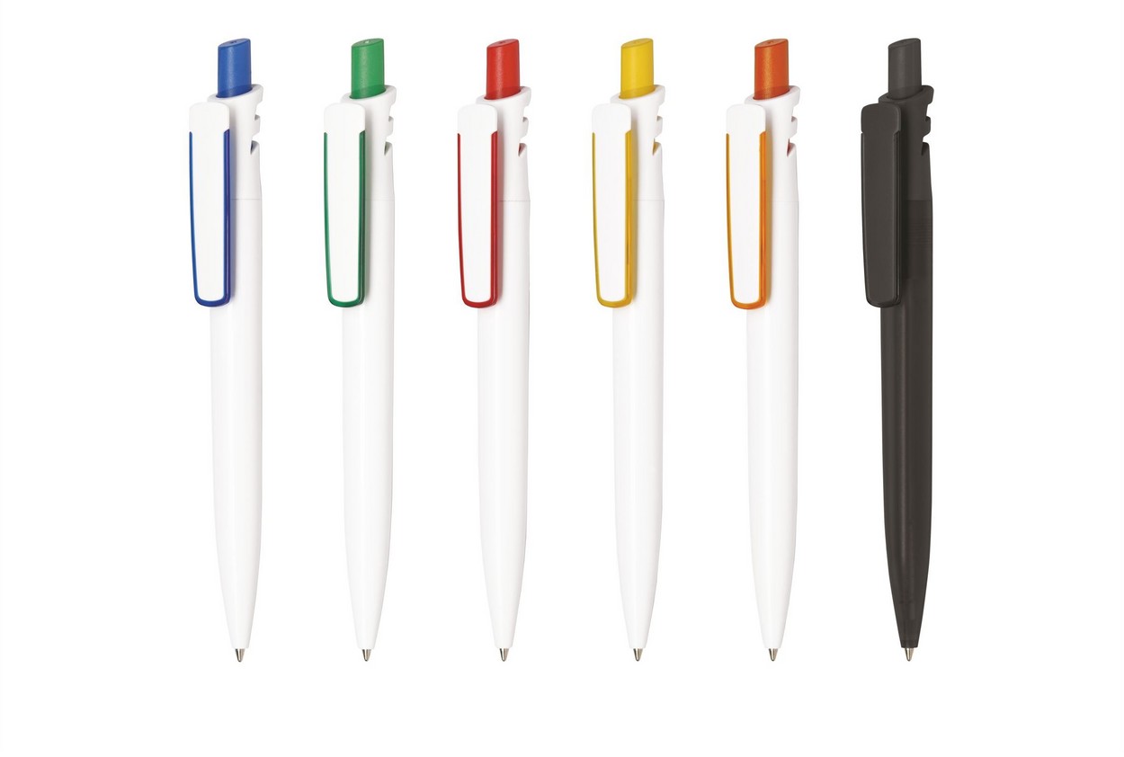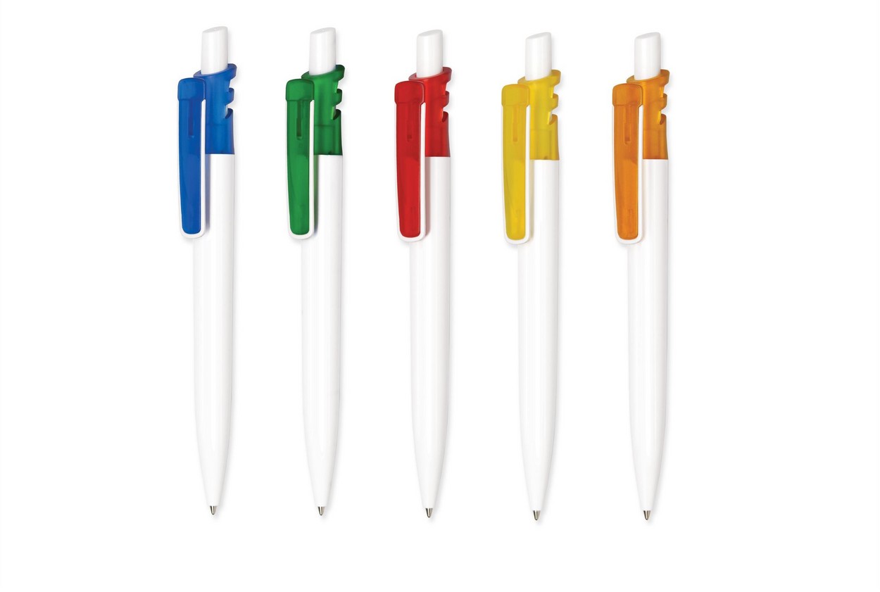 Grand Mix: Farbig-transparenter Schaft, Druckknopf und Lasche, weißer Clip