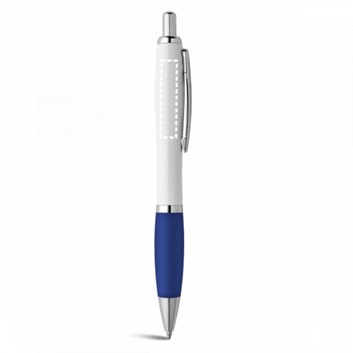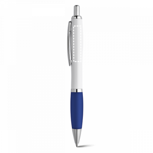 Kugelschreiber aus ABS mit Clip, rutschfestes Gummigriff und weissem Körper. Erhältlich in verscheidenen Farben. Schwarzschreibende Mine. ø12 x 140 mm