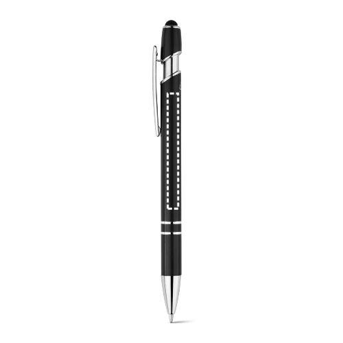 Blauschreibender Kugelschreiber mit Gehäuse aus recyceltem Aluminium (100% rAL) und Touch-Pen Druckknopf. ø10 x 143 mm