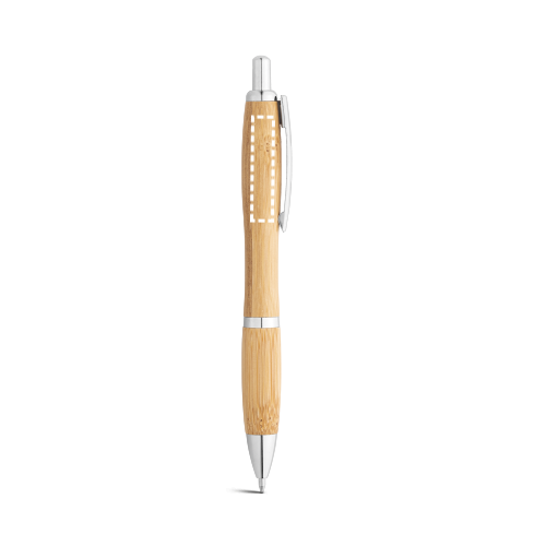 Kugelschreiber aus Bambus mit Clip und Details aus Metall. Da das Produkt aus natürlichen Materialien hergestellt wird, können Farbe des Produkts sowie das Druckergebnis von Produkt zu Produkt unterschiedlich sein. ø13 x 143 mm