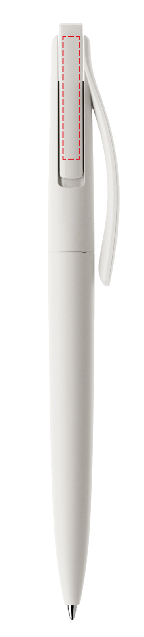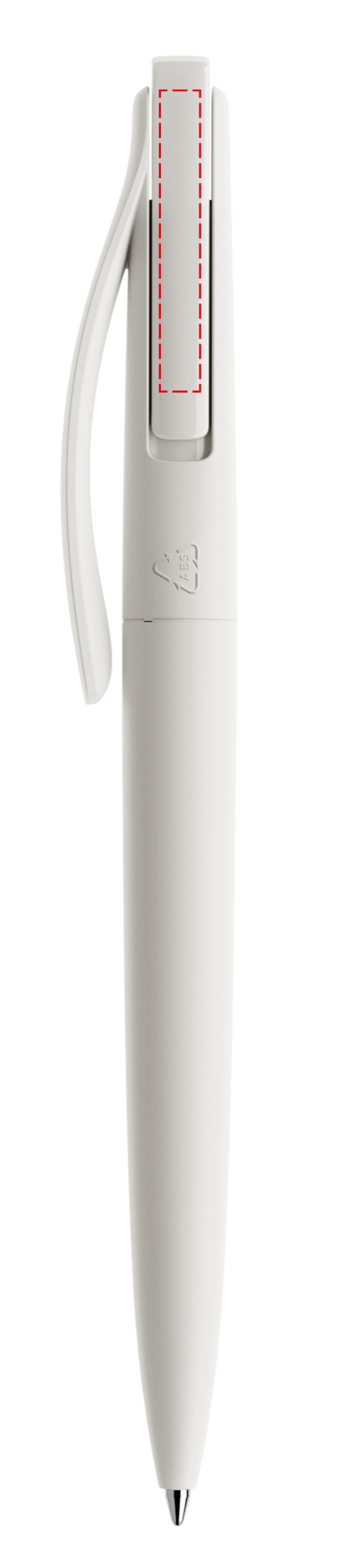 In der Ausführung mit vollfarben mattem Gehäuse (PMM) lieferbar in Schwarz und Weiß, hergestellt mit einem Rezyklatanteil von 100%, gekennzeichnet mit dem internationalen Recycling-Symbol. Sondergehäusefarben ab 10.000 Stück. Fünf Druckflächen für Werbeanbringungen stehen zur Verfügung. Der beidseitig bedruckbare Druckknopf ist in neun transparenten und neun polierten Farben erhältlich und kann nach Belieben kombiniert werden. Ausgestattet mit der umweltfreundlichen auswechselbaren FLOATING BALL® lead free-Großraummine 1.0, Schreiblänge 5.000 m, Schreibfarbe Blau oder Schwarz.