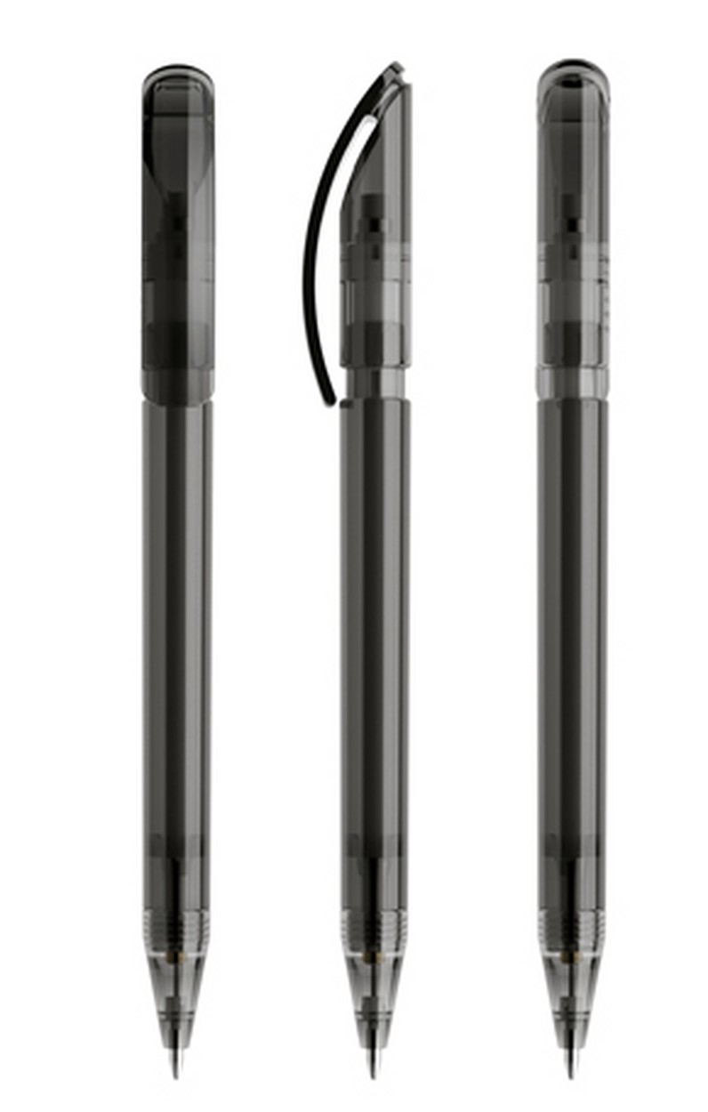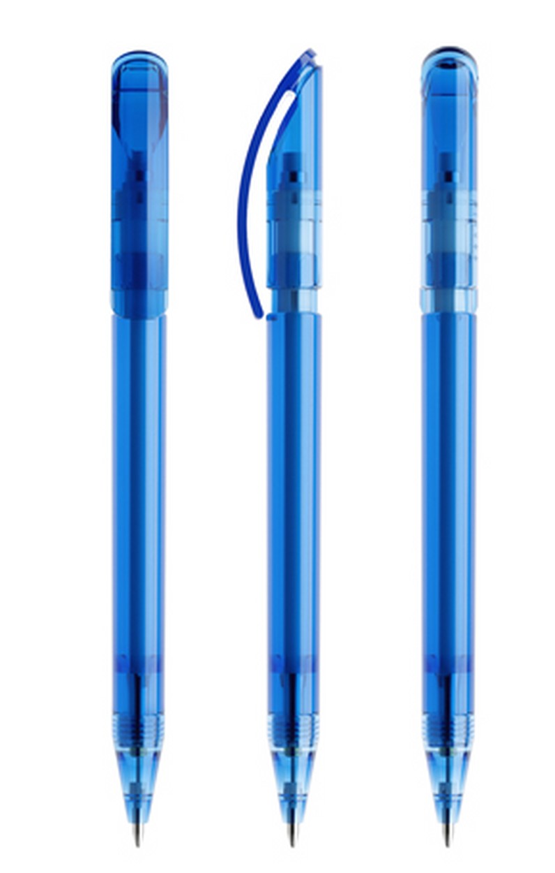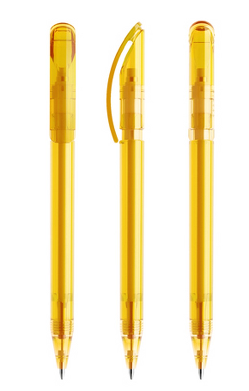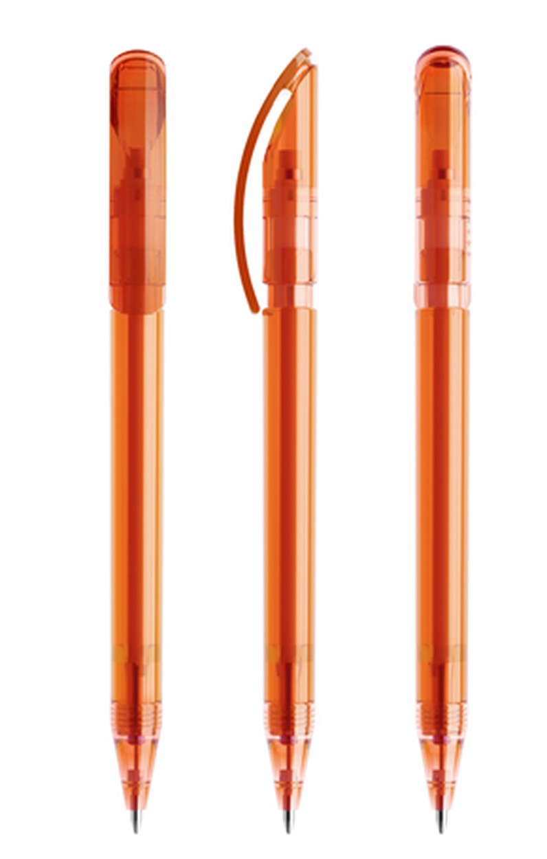 Als Druckbleistift mit transparentem Gehäuse (MTT) lieferbar in fünf Standardfarben, Sondergehäusefarben ab 5'000 Stück. Vier Druckflächen für Werbeanbringungen stehen zur Verfügung. Optional kann die Kappe mit einem farblich abgesetzten Ring konfektioniert werden. Stabile Doppeldruckmechanik mit versenkbarer Edelstahlspitze für mittelharte, mit Polymeren angereicherte 0,7 mm HB-Minen. Integrierter Qualitätsradierer.