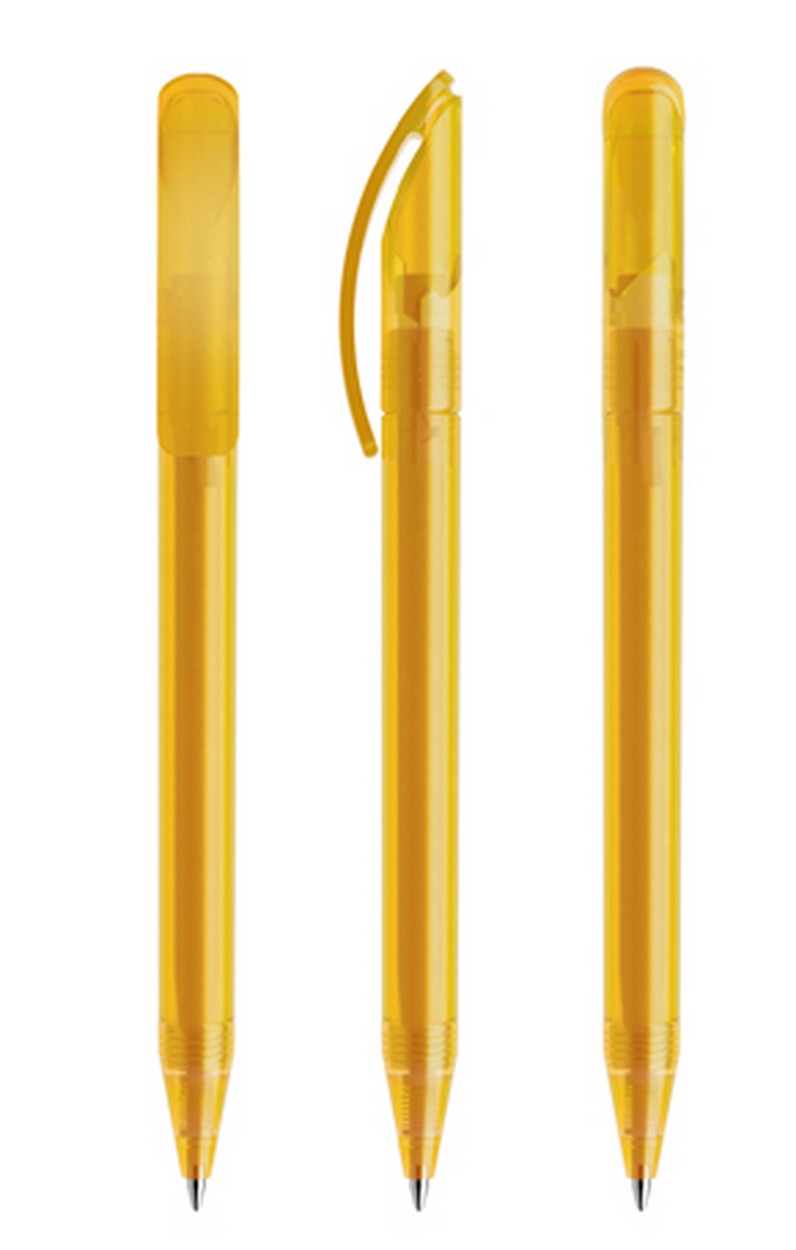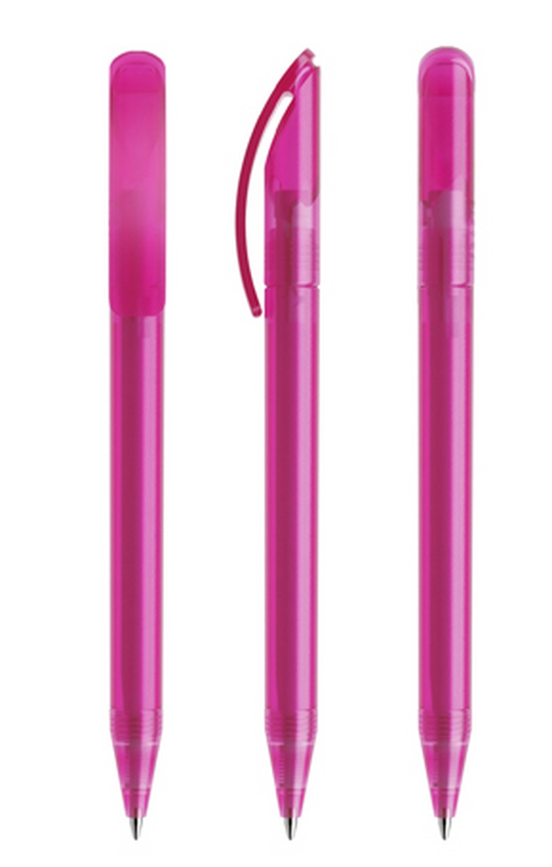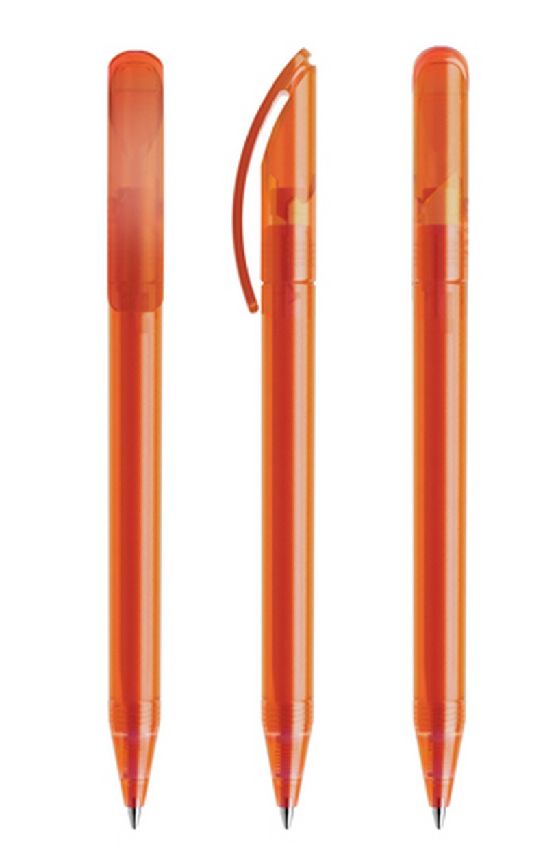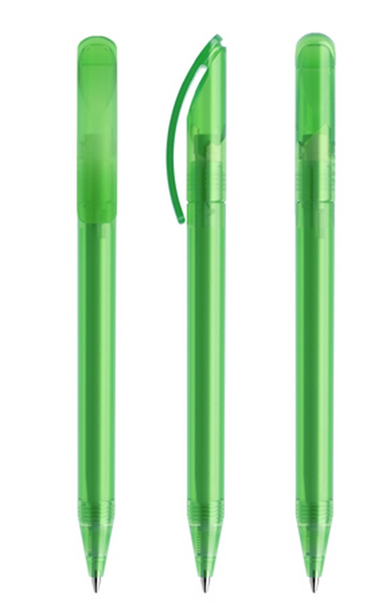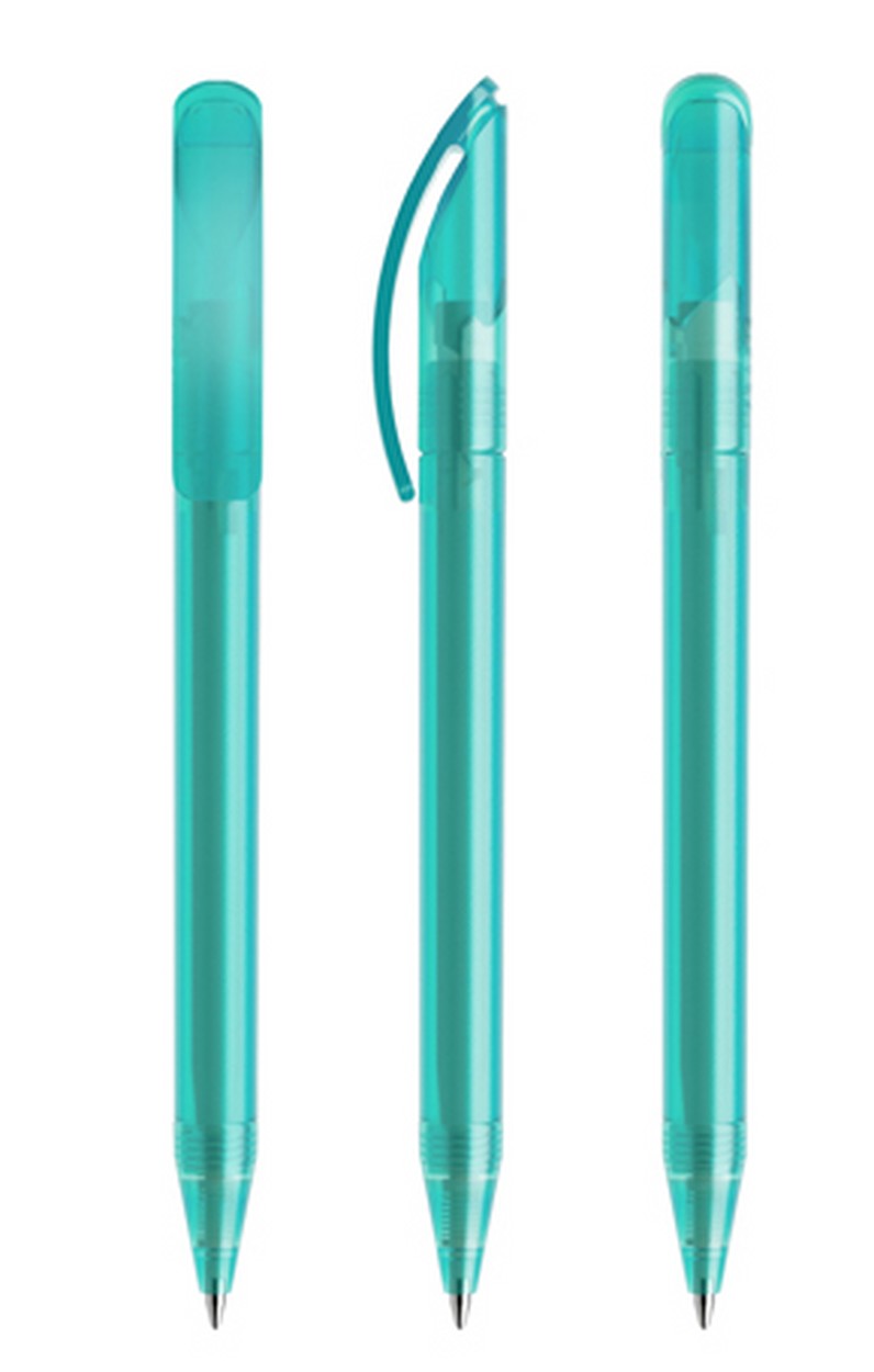 Als Drehkugelschreiber in der Ausführung mit gefrostetem Gehäuse (TFF) lieferbar in zwölf Standardfarben, Sondergehäusefarben ab 5'000 Stück. Vier Druckflächen für Werbeanbringungen stehen zur Verfügung. Optional kann die Kappe mit einem farblich abgesetzten Ring konfektioniert werden. Das hochwertige neue FLOATING BALL ® Schreibsystem sorgt für ein noch weicheres Schreibgefühl.