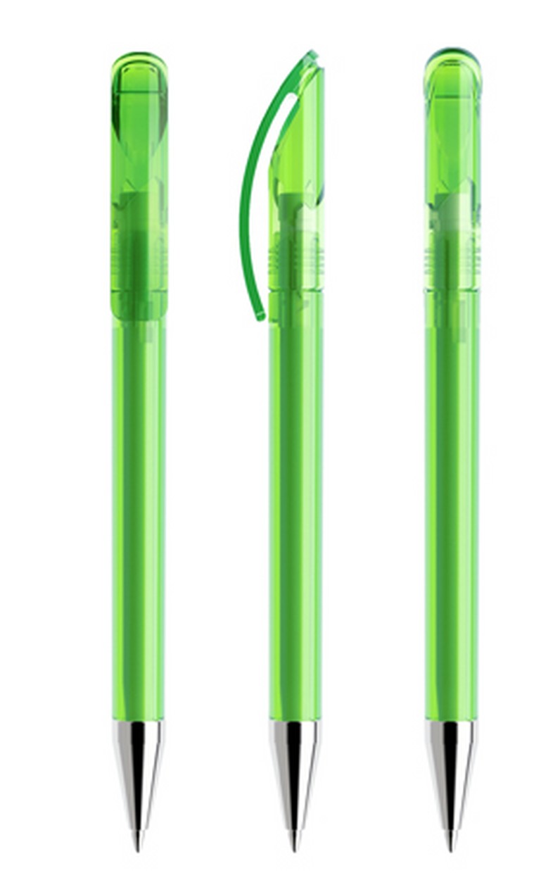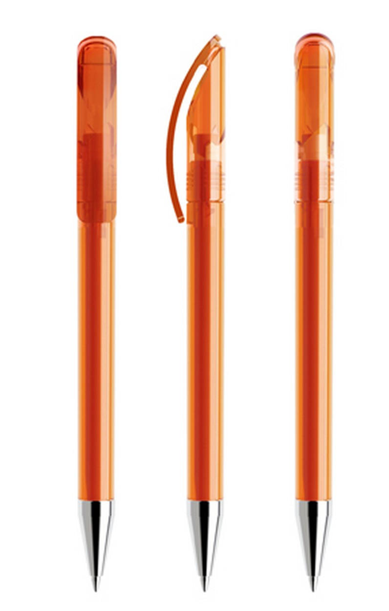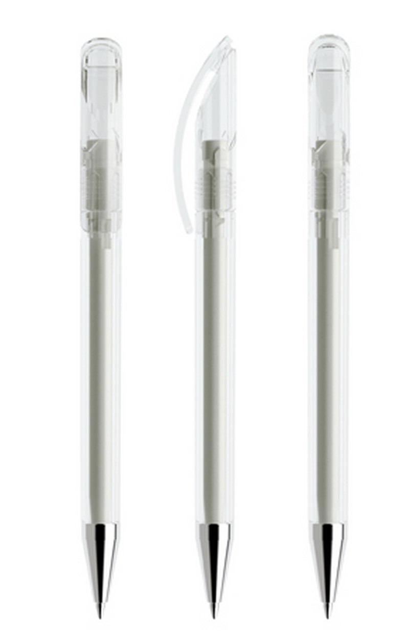 Als Drehkugelschreiber mit transparentem Gehäuse und polierter Metallspitze (TTC) lieferbar in zwölf Standardfarben , Sondergehäusefarben ab 5'000 Stück. Vier Druckflächen für Werbeanbringungen stehen zur Verfügung. Optional kann die Kappe mit einem farblich abgesetzten Ring konfektioniert werden. Das hochwertige neue FLOATING BALL ® Schreibsystem sorgt für ein noch weicheres Schreibgefühl.