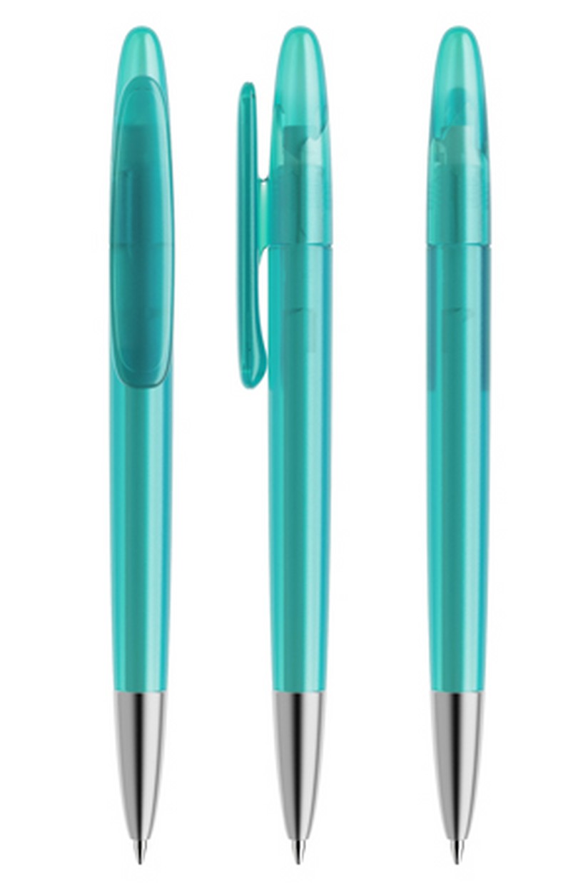 In der Ausführung mit gefrostetem Gehäuse und satinierter Metallspitze (TFS) lieferbar in elf Standardfarben, Sondergehäusefarben ab 10'000 Stück. Sechs Druckflächen für Werbeanbringungen, Fotos oder Wechselbilder im Clip als Option. Das hochwertige neue FLOATING BALL ® Schreibsystem sorgt für ein noch weicheres Schreibgefühl.