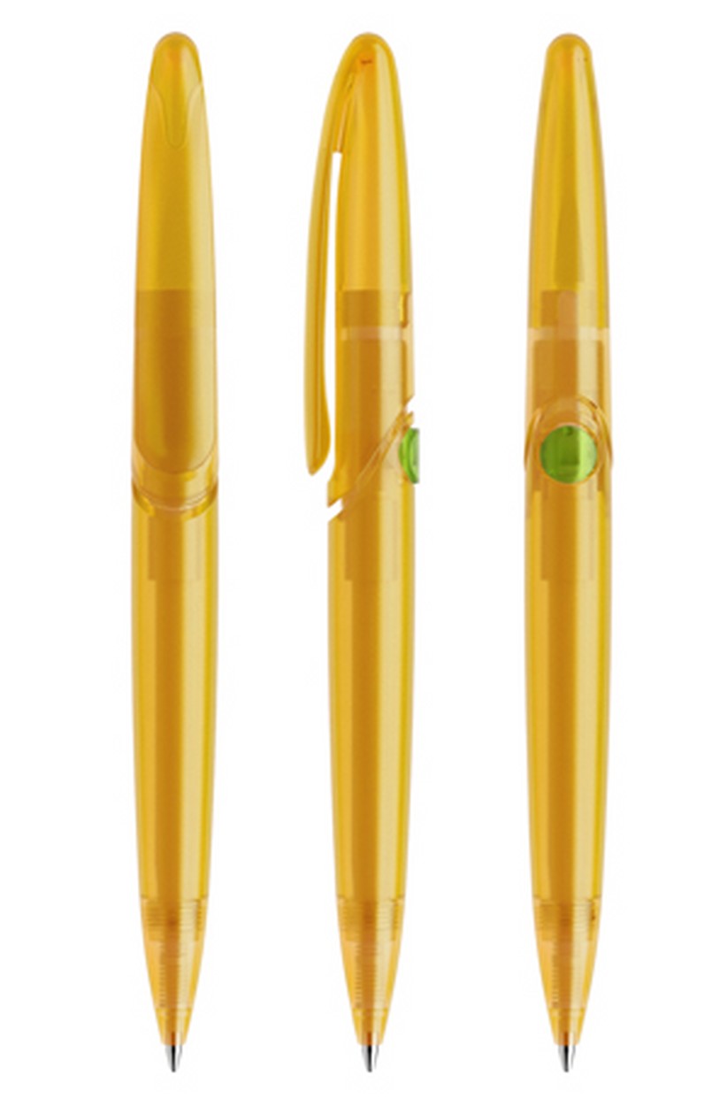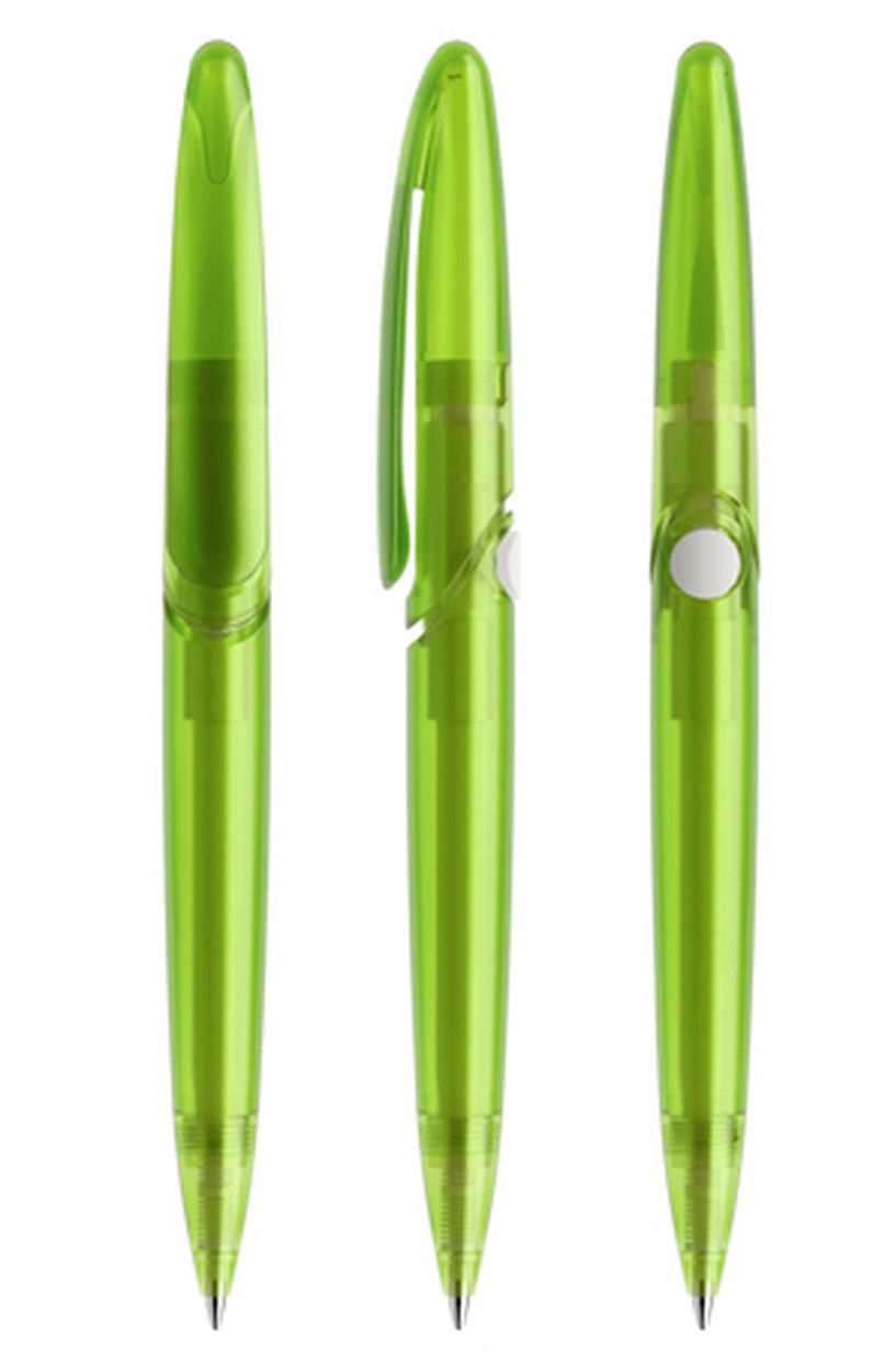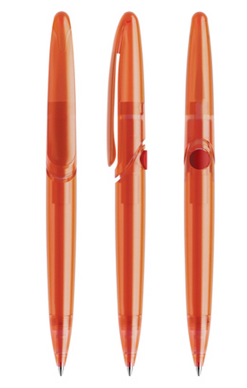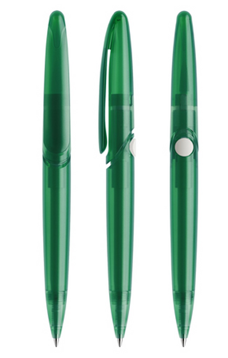 In der Ausführung mit gefrostetem Gehäuse (PFF) lieferbar in elf Standardfarben, Sondergehäusefarben ab 10'000 Stück. Vier Druckflächen für Werbeanbringungen stehen zur Verfügung. Der Druckknopf lässt sich farblich vom Gehäuse absetzen. Das hochwertige neue FLOATING BALL ® Schreibsystem sorgt für ein noch weicheres Schreibgefühl.