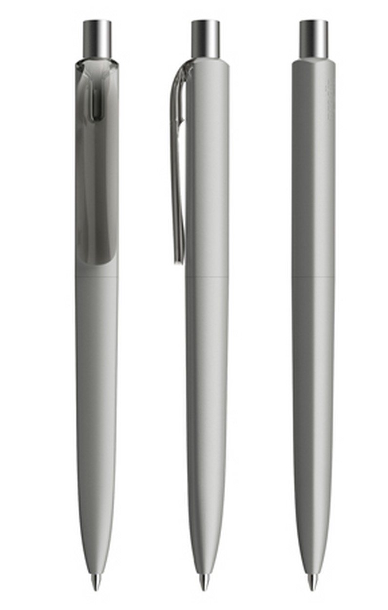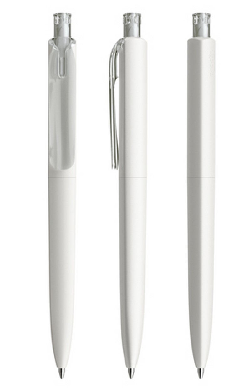 In der Ausführung mit vollfarben mattem Gehäuse (PMM) lieferbar in 5 Standardfarben, Sondergehäusefarben ab 10'000 Stück. Drei Druckflächen für Werbeanbringungen stehen zur Verfügung. Clip und Druckknopf sind in transparenter Oberfläche. Verchromter oder satinierter Druckknopf als Option. Das hochwertige neue FLOATING BALL ® Schreibsystem sorgt für ein noch weicheres Schreibgefühl.