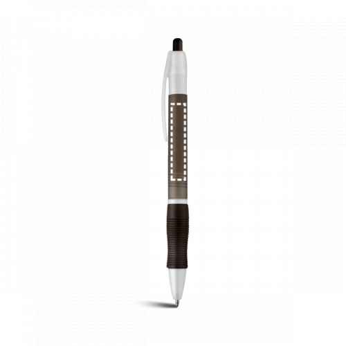 Kugelschreiber aus ABS transparent mit blauschreibender Mine, Clip und Gummigriff. ø10 x 145 mm