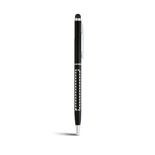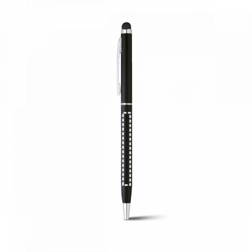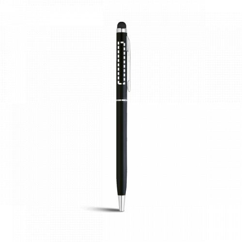 Kugelschreiber aus Aluminium mit Drehmechanismus, Metallclip und Touchpen-Funktion. Schwarz Schreibende. ø8 x 135 mm