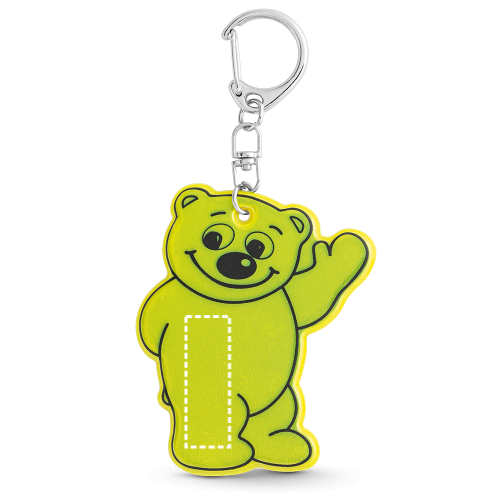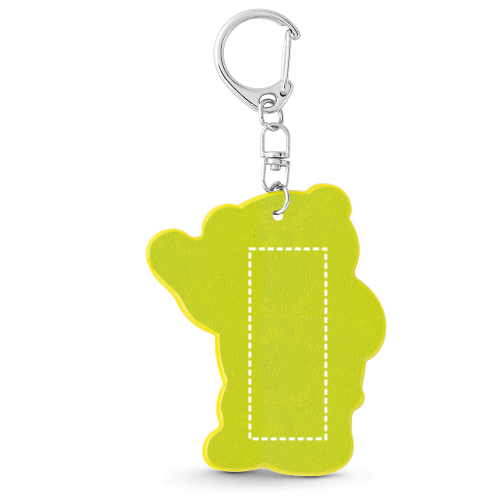Schlüsselanhänger fluoreszierend (Form: Bär). Karabinerhaken: 22 x 26 mm | Produkt: 70 x 60 x 2 mm | Kette: 27 mm | Gesamt: 114 x 60 x 2 mm