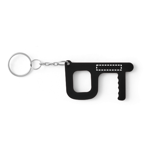 Schlüsselanhänger aus ABS. Aufgrund seines Designs ist es sehr hilfreich beim Tür öffnen und die Spitze erleichtert das Drücken von Tasten, wie z. B. am Geldautomaten oder im Aufzug. 38 x 69 x 5 mm