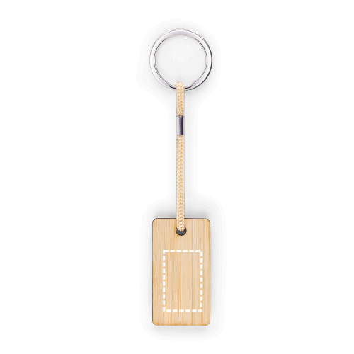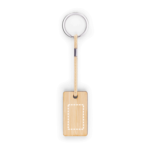 Rechteckiger Schlüsselanhänger aus Bambus mit PET-Schnur. Enthält einen Metallring für einfachen Transport und Aufbewahrung. Da das Produkt aus natürlichen Materialien hergestellt wird, können Farbe des Produkts sowie das Druckergebnis von Produkt zu Produkt unterschiedlich sein. Ring: ø 32 mm | Produkt: 55 x 30 x 8 mm | Kordel: 73 mm | Gesamt: 147 x 32 x 8 mm