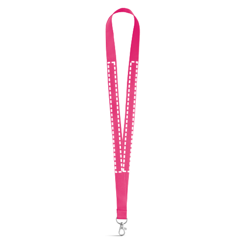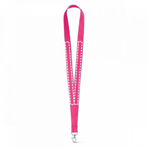 Lanyard aus Polyester, 20 mm breit und einem Karabinerhaken aus Metall. 20 x 480 mm
