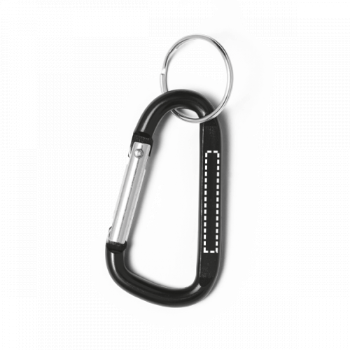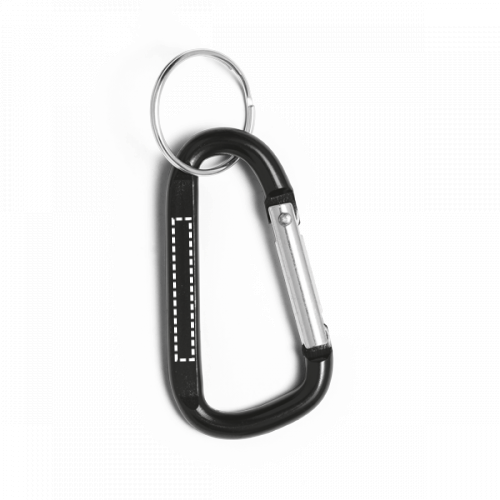 Karabinerclip aus Aluminium mit Schlüsselring und flachem Veredelungsbereich. Nicht zum Klettern geeignet. Ring: ø 25 mm | Produkt: 60 x 32 x 5 mm | Gesamt: 80 x 32 x 5 mm