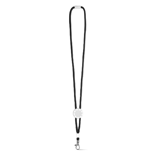 Lanyard aus Polyester (5 mm) mit anpassbarem Kordelzug und einem Karabinerhaken aus Metall. Geeignet für Doming. ø5 x 450 mm
