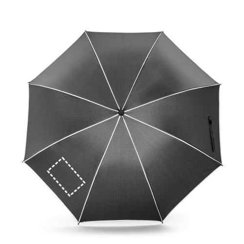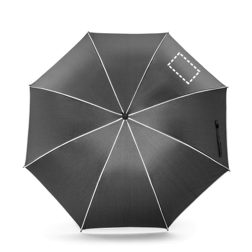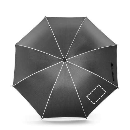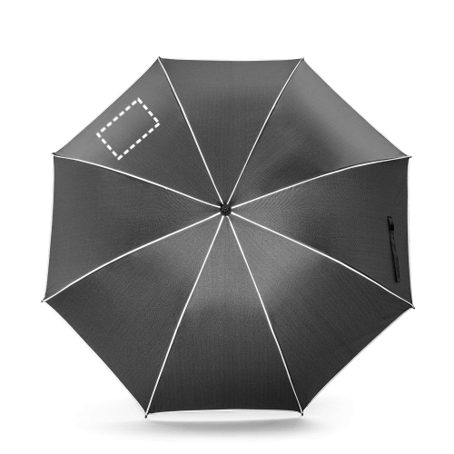 Regenschirm, 27", aus recyceltem Polyester (100% rPET) Pongee 190T, mit Glasfaserstäben und Stange. Regenschirm mit automatischer Öffnung und winddicht, bietet zusätzlichen Widerstandn. Er hat reflektierende Details rund um den Schirm. Geliefert in einer Tasche. ø1200 x 940 mm| Tasche: ø87 x 756 mm