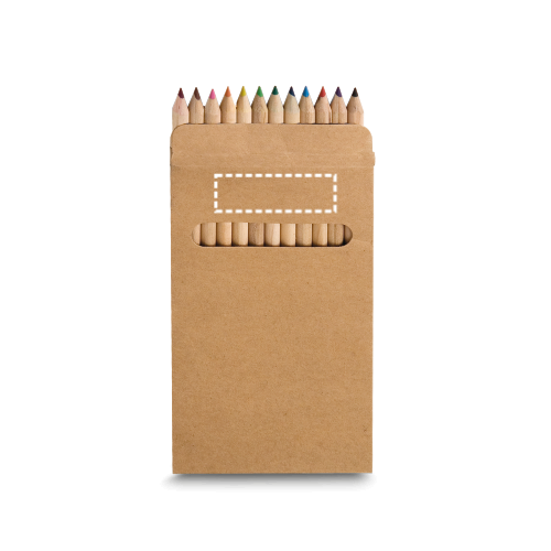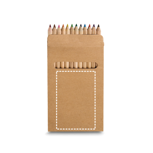 12 Holzbuntstifte in einer Kartonschachtel. 90 x 180 x 9 mm
