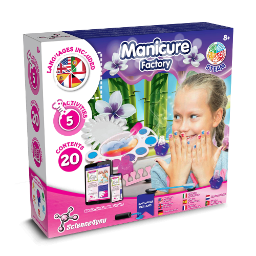 Maniküre-Fabrik für Kinder. Mit dem Maniküre-Kit können sie lernen, wie sie ihren eigenen Nagellack herstellen, ihre Nägel auf ihre eigene Weise mit im Dunkeln leuchtenden Aufklebern verzieren und sogar ein Peeling herstellen, das ihre Hände weich und sauber macht. Empfohlenes Alter: ab 8 Jahren. 223 x 220 x 64 mm