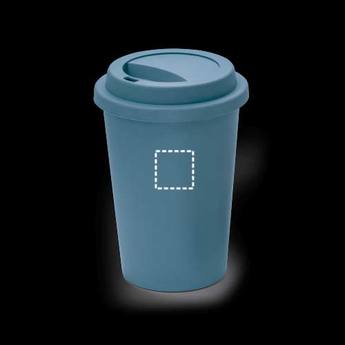 Reisebecher aus Edelstahl (zu 90% recycelt) mit Außenwand aus PP und matter Oberfläche. Mit doppelter Wand und PP-Deckel, auslaufsicher, mit PU- und PET-Griff. Fassungsvermögen bis zu 460 ml....