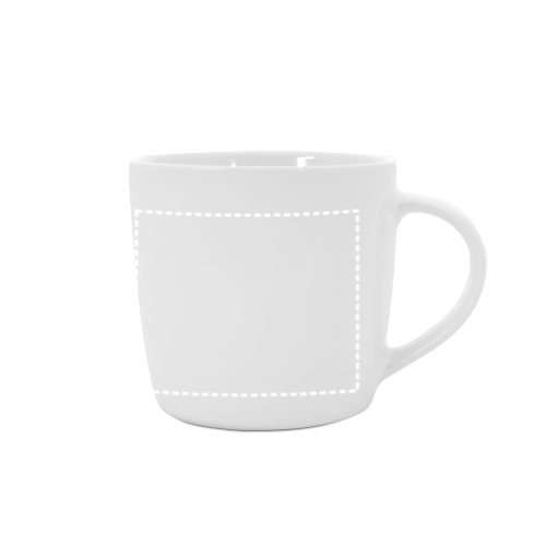 Tasse aus Keramik (370 mL). Geliefert in einer Schachtel. Die Tasse ist Spülmaschinengeeignet und hält mindestens 125 Waschgänge (einschließlich Bedruckung) gemäß EN12875-1 aus. ø90 x 85 mm | Schachtel: 111 x 115 x 87 mm