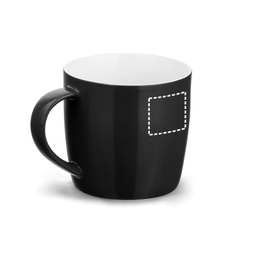 Tasse aus Keramik (370 mL). Geliefert in einer Schachtel. Die Tasse ist Spülmaschinengeeignet und hält mindestens 125 Waschgänge (einschließlich Bedruckung) gemäß EN12875-1 aus. ø90 x 85 mm | Schachtel: 92 x 120 x 94 mm