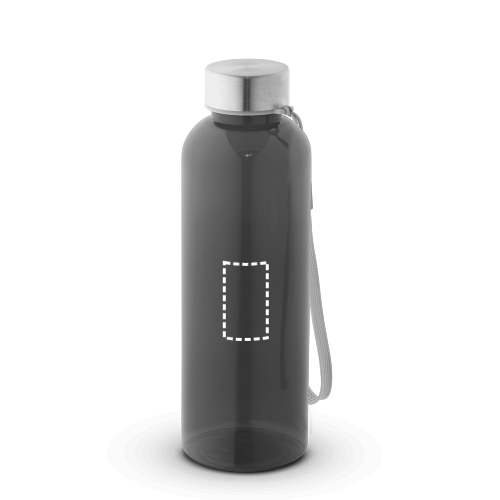 Trinkflasche (600ml) aus recyceltem PET (100% rPET) mit transluzenter, glänzender Oberfläche. Auslaufsicherer Edelstahldeckel mit Polyesterband, was das Mitnehmen vereinfacht. ø65 x 210 mm