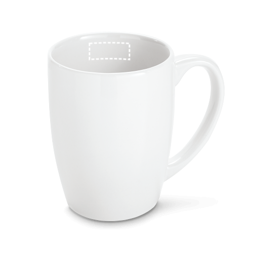 Tasse aus Porzellan (350 mL). Geliefert in einer Schachtel. Die Tasse ist Spülmaschinengeeignet und hält mindestens 125 Waschgänge (einschließlich Bedruckung) gemäß EN12875-1 aus. ø82 x 100 mm | Schachtel: 115 x 120 x 90 mm