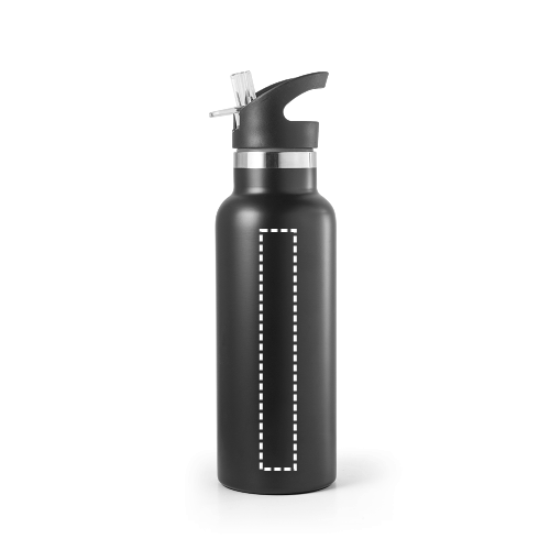 Flasche aus Edelstahl (570 mL), vakuumisoliert mit Doppelwand. Der Deckel enthält einen PP-Trinker mit Strohhalm. Geliefert in einer Geschenkschachtel aus Kraftpapier. Ø58 x 240 mm