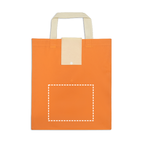 Faltbare Tragetasche aus Non-Woven (80 g/m²) mit 35 cm langen Henkeln. Die Tasche wird gefaltet geliefert. Abmessungen Offen: 350 x 410 x 100 mm | Gefaltet: 135 x 130 x 15 mm