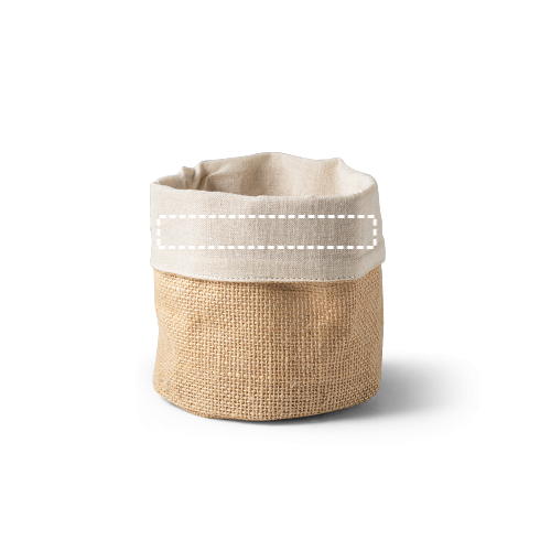 Mehrzweckbeutel aus Jute (260g/m²) und Baumwolle (120g/m²). Kann als Blumentopf oder Aufbewahrungsbeutel verwendet werden. Ø150 x 180 mm