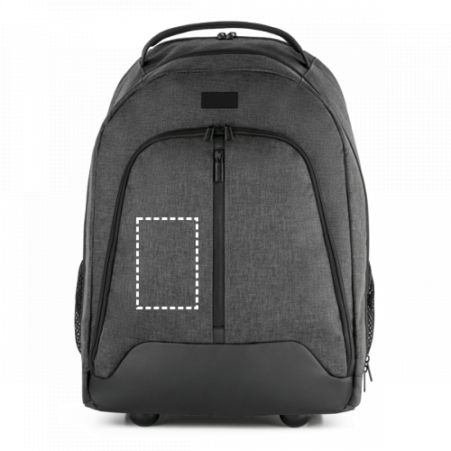 Trolley-Rucksack für Laptops, der sich an verschiedene Momente Ihres Alltags anpasst. Als Rucksack bietet er mehr Bewegungsfreiheit, während er als Trolley mehr Komfort bei längeren Strecken gewährleistet. Inklusive abnehmbarer Metallplatte mit Magnet zur einfachen Personalisierung.Außenmaterial: hochdichtes 600D PolyesterInnenmaterial: 210D PolyesterLaptopfach: 15.6"Volumen (L): 21Fächer: 1 HauptfachAußenfächer: 2 Fronttaschen mit Reißverschluss und 2 Seitentaschen aus NetzmaterialZusätzliche Merkmale: gepolsterter Radschutz, ausziehbarer Metallgriff, abnehmbare Metallplatte zur Personalisierung 340 x 430 x 170 mm | Plättchen: 50 x 20 mm