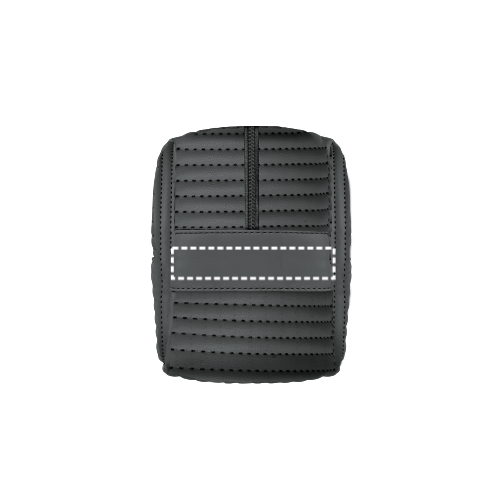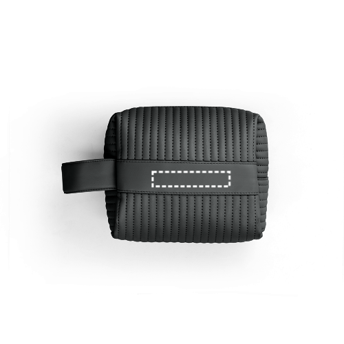 Tasche aus recyceltem PU (21% recyceltes PU und 30% recyceltes Polyester), mit gesteppter Textur und Futter aus weichem recyceltem Polyester. Seitlicher Griff und Frontstreifen aus PU zur einfachen Personalisierung. 180 x 140 x 80 mm