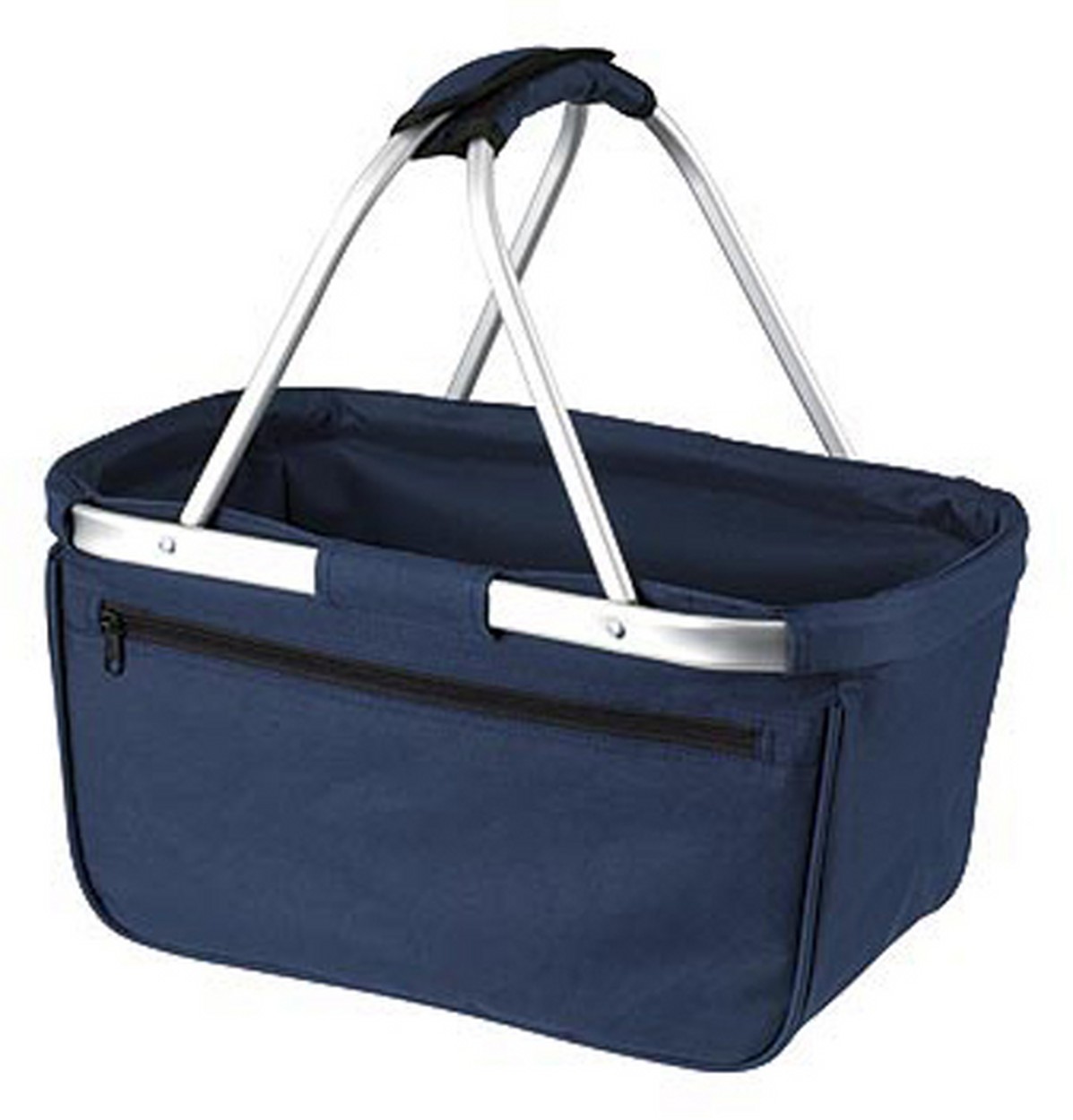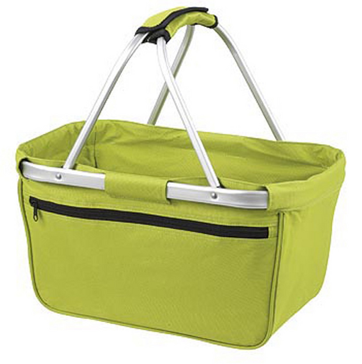 formschöner Einkaufskorb mit Alurahmen und Reißverschluss-Vortasche