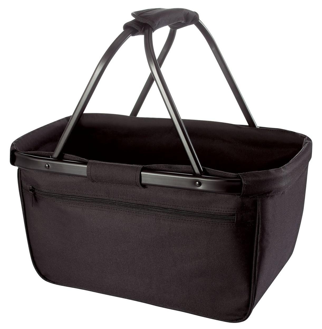 formschöner Einkaufskorb mit Alurahmen und Reißverschluss-Vortasche