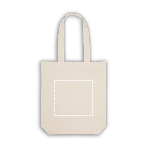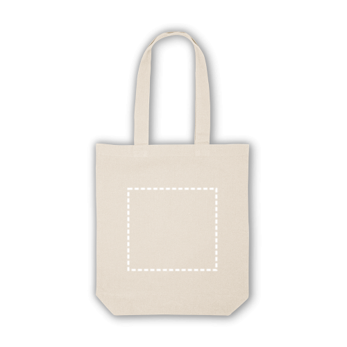 Tasche aus 100% Baumwolle (220 g/m²), mit 65 cm langen Henkeln. Das Produkt wird unter zertifiziertem Standard für die Verwendung von Schadstoffen in Textilien hergestellt. 380 x 400 x 100 mm