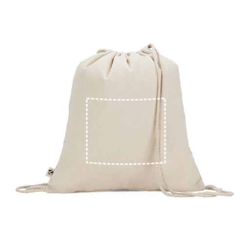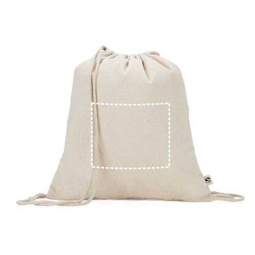 Rucksacktasche aus 100% Recycling-Baumwolle (180 g/m²), mit Kordeln aus Baumwolle. Recycelte Baumwolle ist einfarbig und ungefärbt. Das Rohmaterial wird in seiner ursprünglichen Form und Farbe verwendet, ohne dass Chemikalien zum Färben oder Bleichen eingesetzt werden, was zu einer geringeren Umweltbelastung beiträgt. Die einheitliche Farbe wird durch die Auswahl von recyceltem Garn mit demselben Farbton erzielt, wobei Verunreinigungen und Farbabweichungen auftreten können. 370 x 410 mm