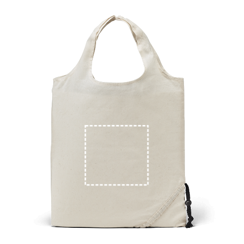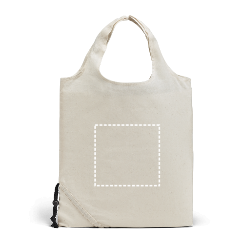 Faltbare Tragetasche aus 100% Baumwolle (100 g/m²). Die Tasche wird ungefaltet geliefert. 370 x 400 mm