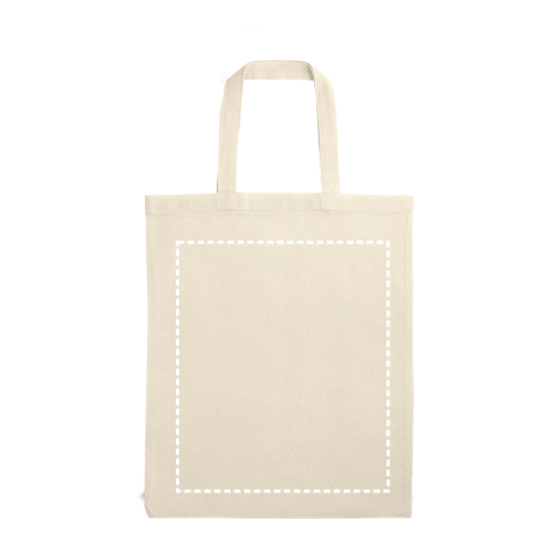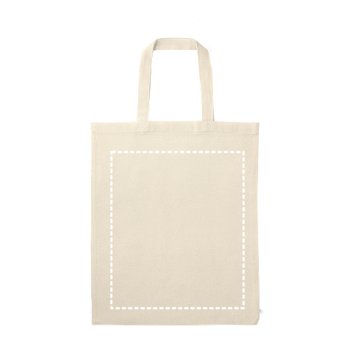 Tasche aus 100% Baumwolle (140 g/m²), mit 40 cm langen Henkeln. Das Produkt wird unter zertifiziertem Standard für die Verwendung von Schadstoffen in Textilien hergestellt. 270 x 330 mm