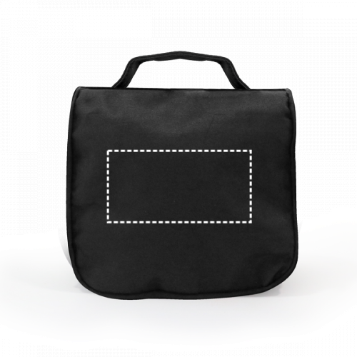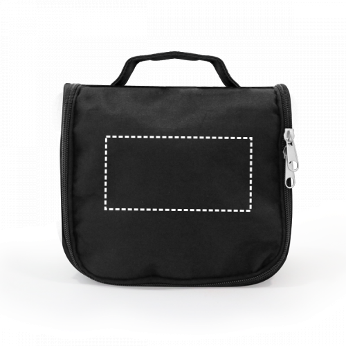 Kulturbeutel aus Mikrofasern mit diversen Taschen, Aufhängehaken und Reißverschluss. 200 x 160 x 85 mm