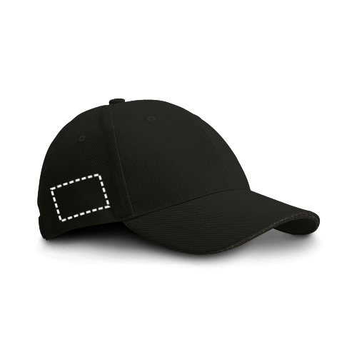Kappe aus 100% gebürsteter Baumwolle mit 6 Segmenten (260 g/m²), Belüftungsöffnungen und verstellbarer Metallschnalle. Größe: 580 mm