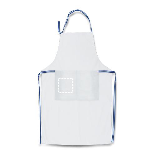 Schürze aus Baumwolle und Polyester (150 g/m²) mit zwei Vordertaschen und verstellbarem Nackenband. 650 x 850 mm | Tasche: 170 x 180 mm