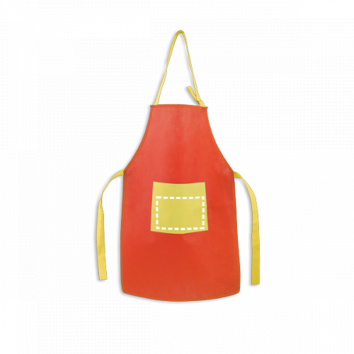 Kinderschürze aus Non-Woven (80 g/m²) mit einer Vordertasche und anpassbaren Bändern. 400 x 600 mm | Tasche: 200 x 150 mm