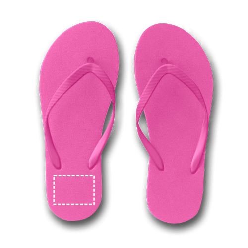 Bequeme Flip-Flops mit PE-Sohle und PVC-Riemen. Erhältlich in einer breiten Farbpalette. Verfügbare Größen: L/XL (40 bis 43). Wird in einem Polybeutel geliefert. L/XL