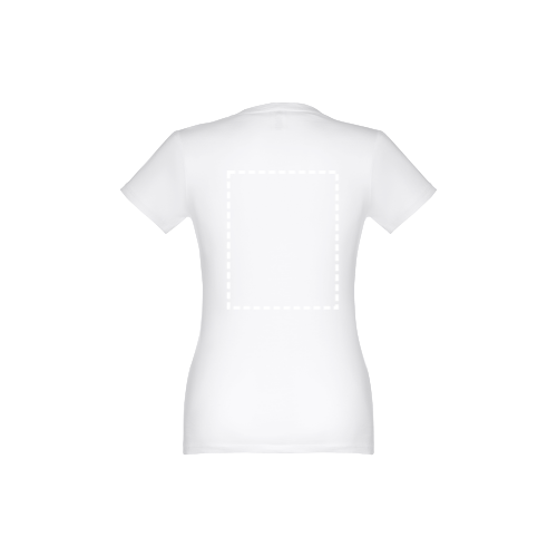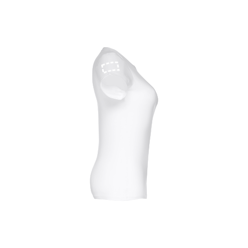 Damen T-shirt aus 100% Strickjersey und Baumwolle (190g/m²), tailliert mit kardiertem Baumwollfaden, dünnem Jersey-Kragen mit Satin-Verstärkungsband und Doppelnaht an Ärmeln und Saum. Größen: S, M, L, XL, XXL