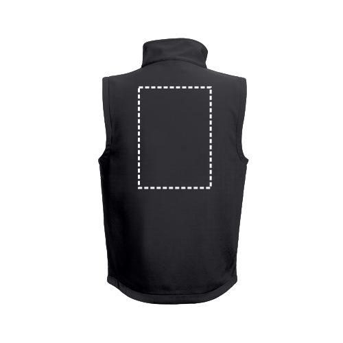 Weste aus Softshell bestehend aus 96% Polyester und 4% Elasthan (2 Schichten): 280g/m². Diese hat eine wasserabweisende Beschichtung und die Rückseite ist länger als die Vorderseite. Diese Weste hat 3 Taschen: einfache Brust- und 2 Reißverschlusstaschen. Zugangsbereich vereinfacht die Veredelung. Größen: S, M, L, XL, XXL, 3XL