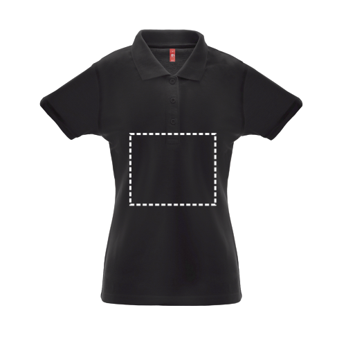 Damen Poloshirt aus Piqué Stoff 35% kardierter Baumwolle und 65% Polyester (200g/m²), tailliert mit geripptem Kragen und Ärmel. (Farbe: 183: 85% Baumwolle /15% Viskose). Der Kragen, die Knopfleiste und die Ärmel haben einen zweifarbigen Kontrast. Mit verstärkter Knopfleiste und 3 farblich abgestimmten Knöpfen, seitlichen Öffnungen und einem Ersatzknopf an der Innennaht. Größen: S, M, L, XL, XXL