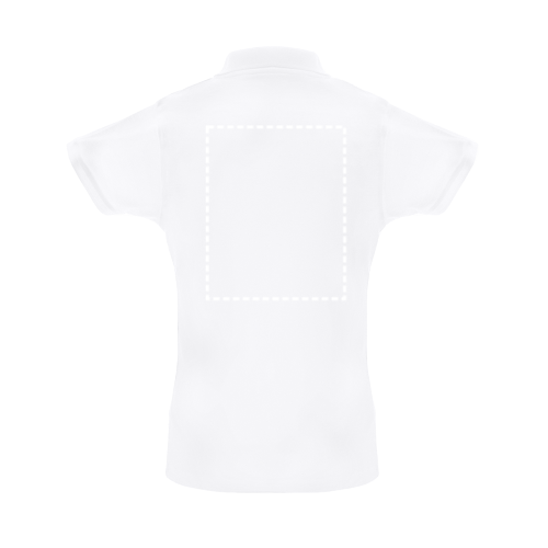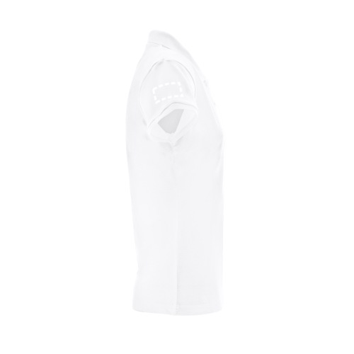 Damen Poloshirt aus Piqué Stoff 35% kardierter Baumwolle und 65% Polyester (200g/m²), tailliert mit geripptem Kragen und Ärmel. Der Kragen, die Knopfleiste und die Ärmel haben einen zweifarbigen Kontrast. Mit verstärkter Knopfleiste und 3 farblich abgestimmten Knöpfen, seitlichen Öffnungen und einem Ersatzknopf an der Innennaht. Größen: S, M, L, XL, XXL