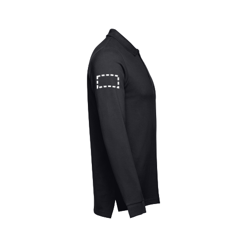 Herren Poloshirt aus Piqué Stoff 100% kardierter Baumwolle (210 g/m²), langarm. Bei der Farbe 183 bestehend aus 85% Baumwolle und 15% Viskose. Gerippter Kragen und Ärmelbund. Verstärkungsband am Kragen und verstärkte Knopfleiste mit 3 farblich abgestimmten Knöpfen und einem Ersatzknopf an der Innennaht. Unten mit seitlichen Öffnungen. Größe: 3XL
