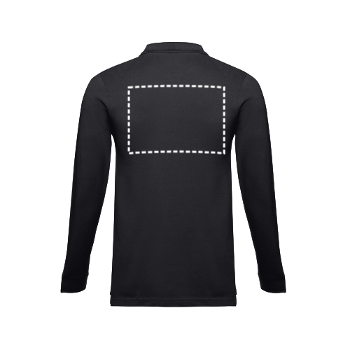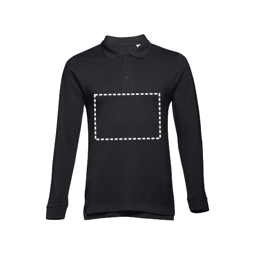 Herren langarm Poloshirt aus Piqué Stoff 100% kardierter Baumwolle (210g/m²) mit geripptem Kragen und Ärmelbund, einem Verstärkungsband am Kragen, einer verstärkten Knopfleiste mit 3 farblich abgestimmten Knöpfen und einem Ersatzknopf an der Innennaht. Unten mit seitlichen Öffnungen. Bei der Farbe 183 bestehend aus 85% Baumwolle und 15% Viskose. Etikett ist abreissbar. Größen: S, M, L, XL, XXL