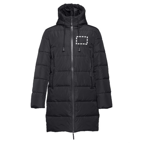 Parka aus 100% Polyester (Außenseite aus 300T Polyester Pongee Beschichtung (75g/m²), Innenseite aus 100% Polyester (50g/m²), Füllmaterial (335g/m²). Es handelt sich um eine lange, gepolsterte und unisex Jacke mit Innentaschen, gefütterte Kapuze mit elastischen Bündchen, Doppelsteppnähten und wasserdichten Reißverschlüssen. Diese Parka ist robust und hält warm. Größen: S, M, L, XL, XXL